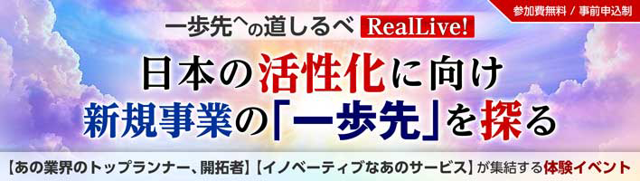 2025/06/20 14:00~17:00 代表 田所雅之が一歩先への道しるべ Real Live! 日本の活性化に向け新規事業の「一歩先」を探る にて、代表の田所雅之が基調講演を行います。