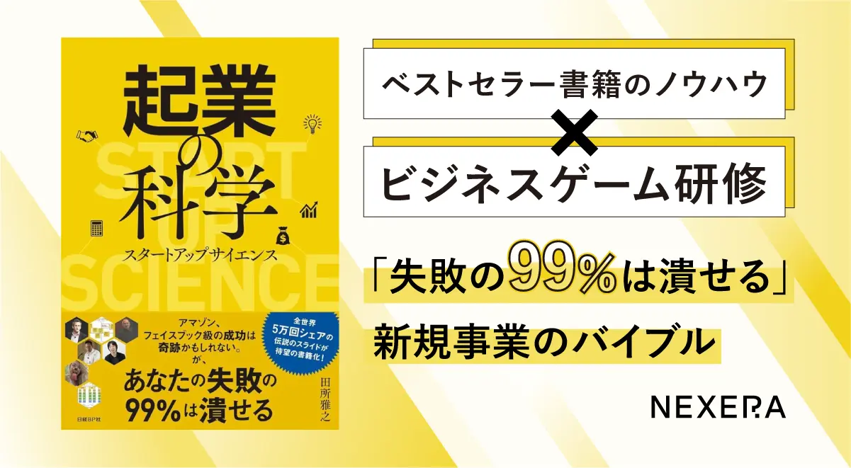 ビジネスゲーム研修を提供する株式会社NEXERAと連携し、『起業の科学 スタートアップサイエンス』のエッセンスを体感できるビジネスゲーム研修を開発いたしました。本研修は2025年8月中旬をめどに提供を開始いたします。